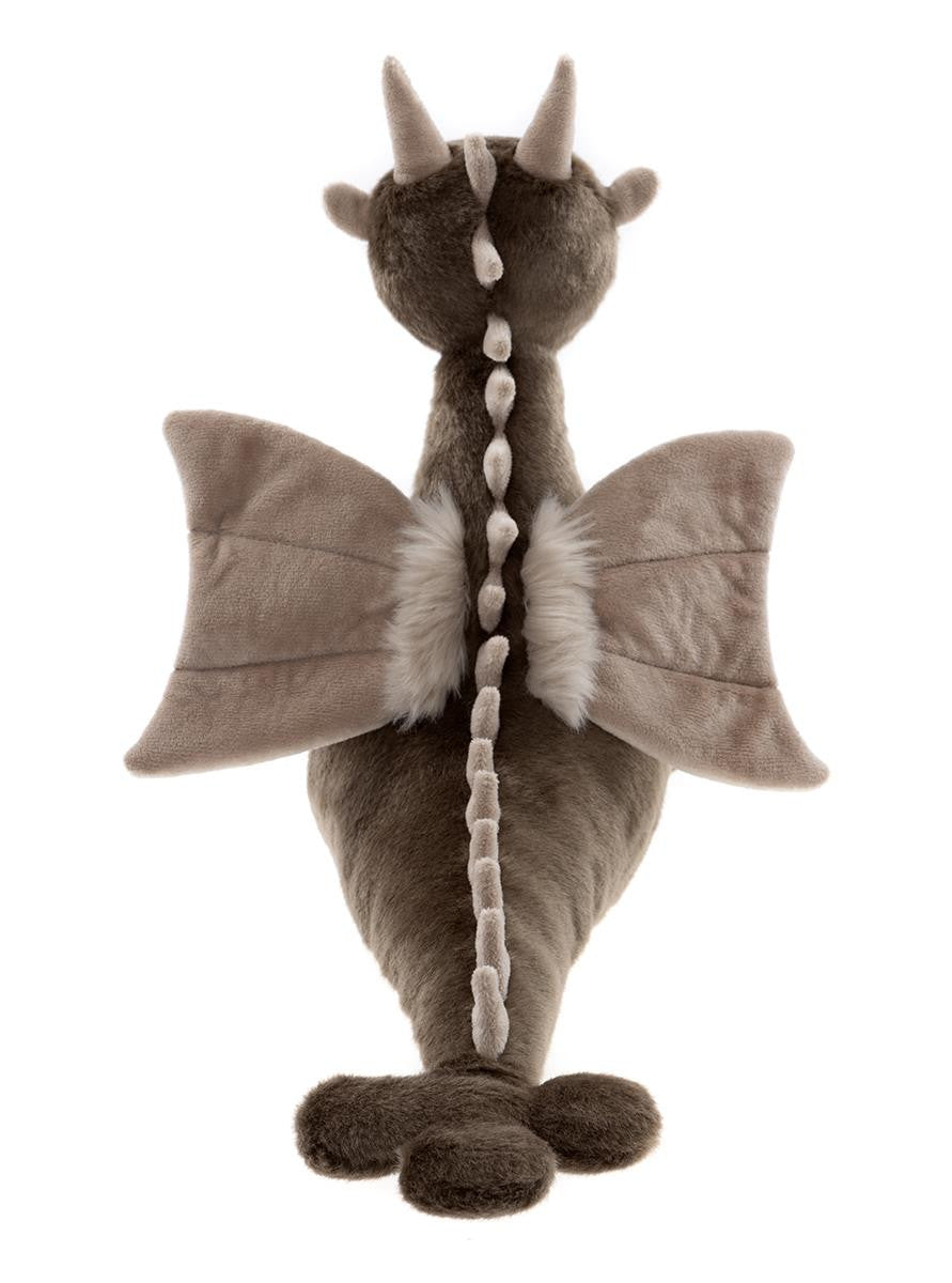 Made from super-soft brown and grey plush, this lovable plush dragon features adorable horns, beautiful wings, and detailed spinal ridges that give him a unique and magical look. With a plump, cuddly body and gentle expression, Clubs is the perfect everyday companion for little ones and plush lovers alike. And thanks to his non-jointed design and machine washable material, he’s ready for plenty of hugs and adventures.