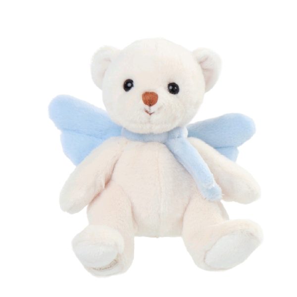 Guardian Angels Baby Boy, the soft and cuddly bear sent from above. With soft white fur and delicate baby blue wings, and matching scarf around his neck, this heavenly bear is the perfect companion for anyone in need of a warm and loving hug.