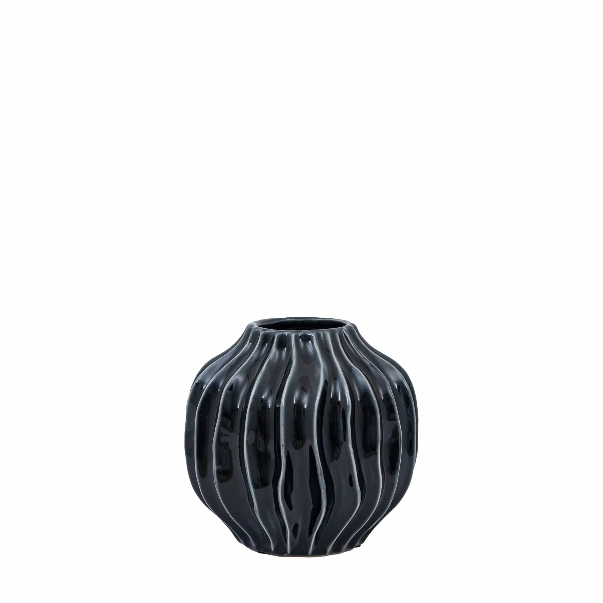 Inspired by a beautiful coral reef, this stunning ceramic ribbed vase can't help but grab your attention. The undulating curved ribs are highlighted by a rich ink blue glaze, creating an organic and attention grabbing piece.