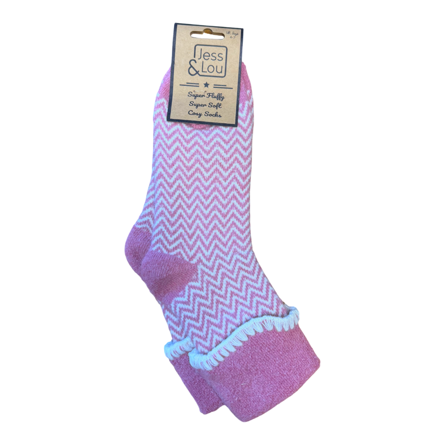 Jess & Lou - Pink Cuff Herringbone Cosy Socks