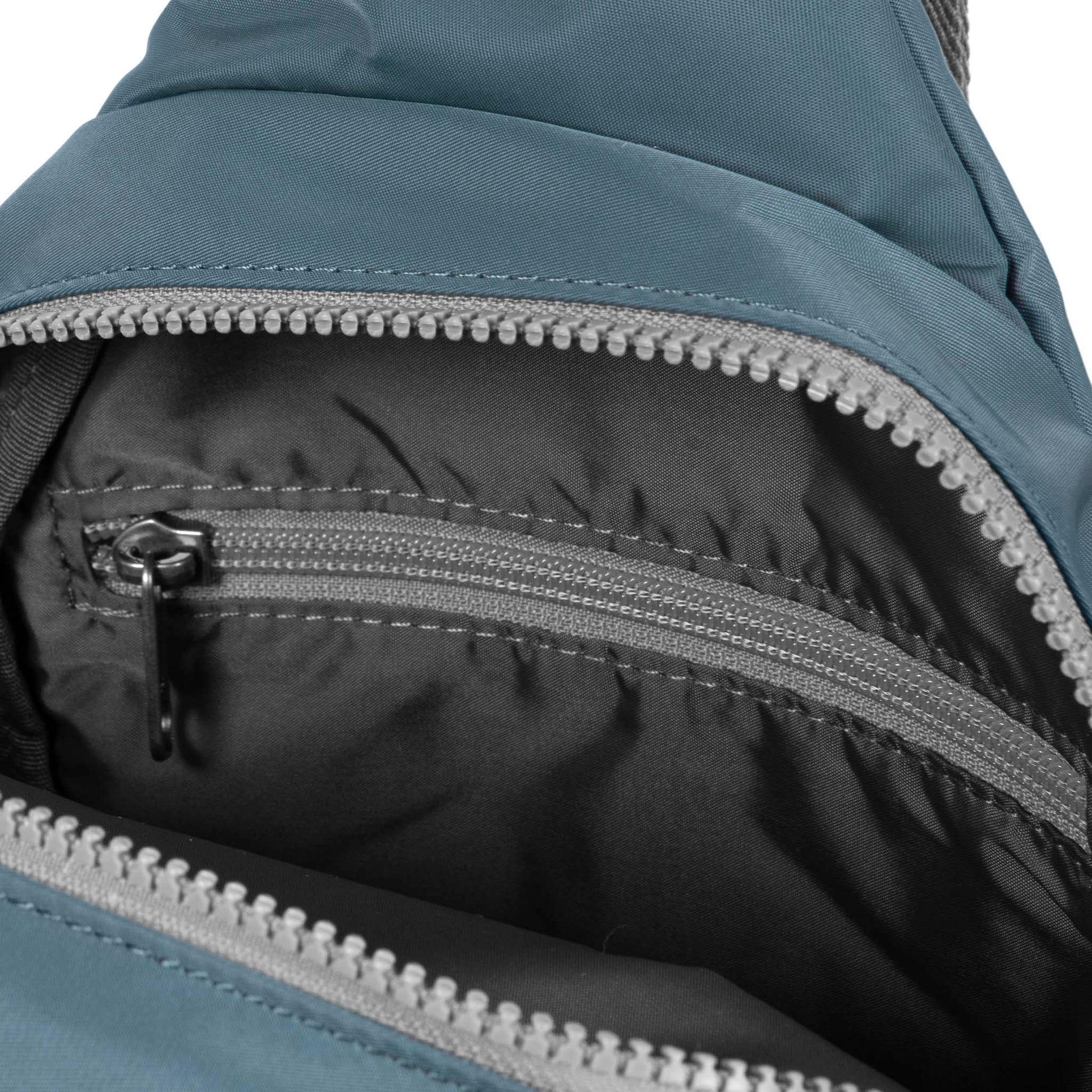 The Willesden Bag is a stylish crossbody crafted from weather-resistant recycled materials. It features a spacious main compartment, a front zip pocket, and a discreet back pocket, perfect for keeping your essentials secure. Inside, an organisational panel and two hidden pockets help you stay effortlessly sorted. Finished with bold chunky zips and a comfortable over the shoulder strap, this bag is made to carry your mobile, keys, wallet and more.