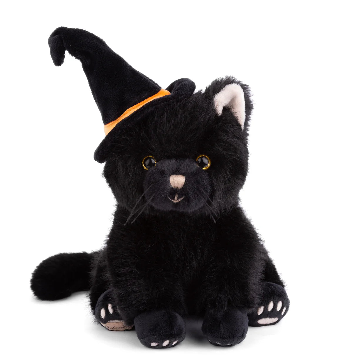 Meet Bambo, the charming black cat plush with a playful Halloween spirit. With his soft midnight-black fur, bright golden eyes, and stitched pink nose, Bambo is irresistibly huggable. He wears a tall black witch’s hat with an orange band, adding a festive touch to his adorable look. Perfect for spooky season cuddles or as a year-round companion, Bambo is ready to bring a little magic to your day.
