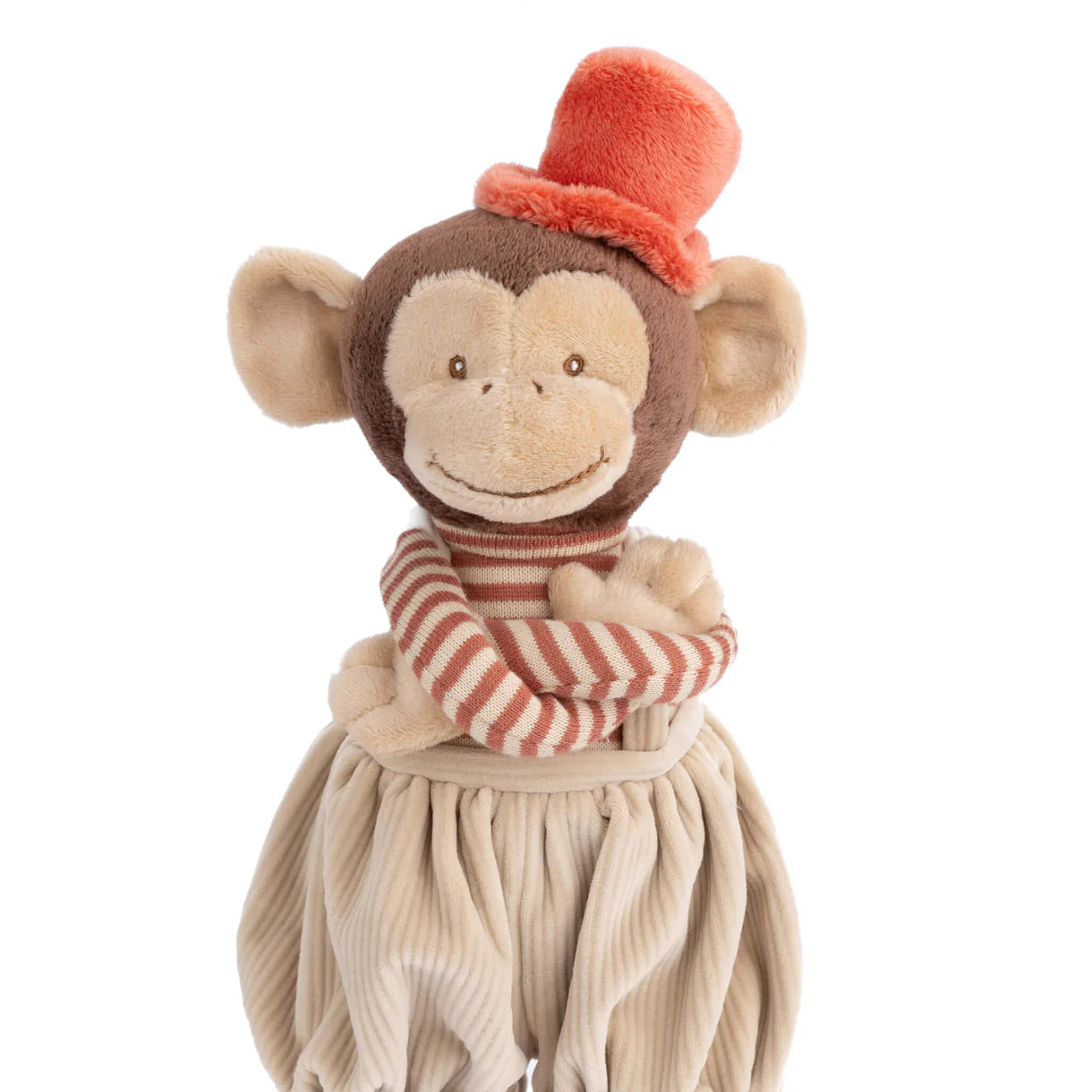 Winston the Monkey is a playful and dapper character. He stands out with his vibrant orange top hat, adding a touch of flair and sophistication to his look. His orange striped shirt brings a lively burst of colour, perfectly complementing his tan overalls, which are both stylish and practical for all his monkey adventures. Winston is sure to capture the hearts of both young and old.